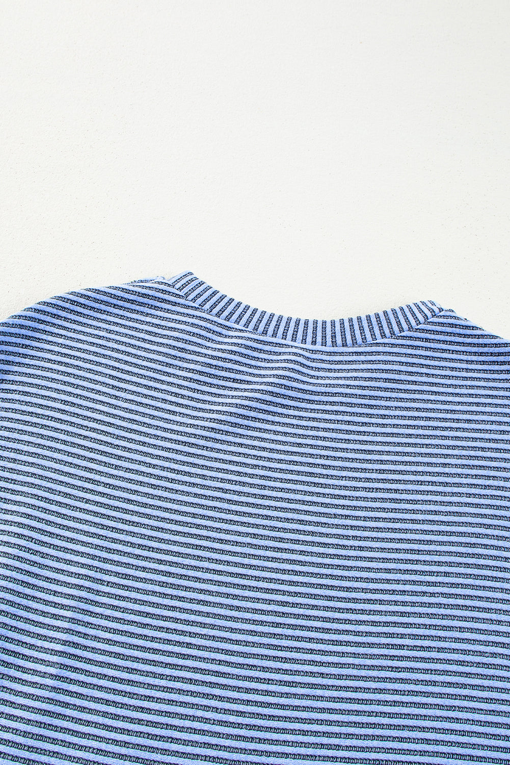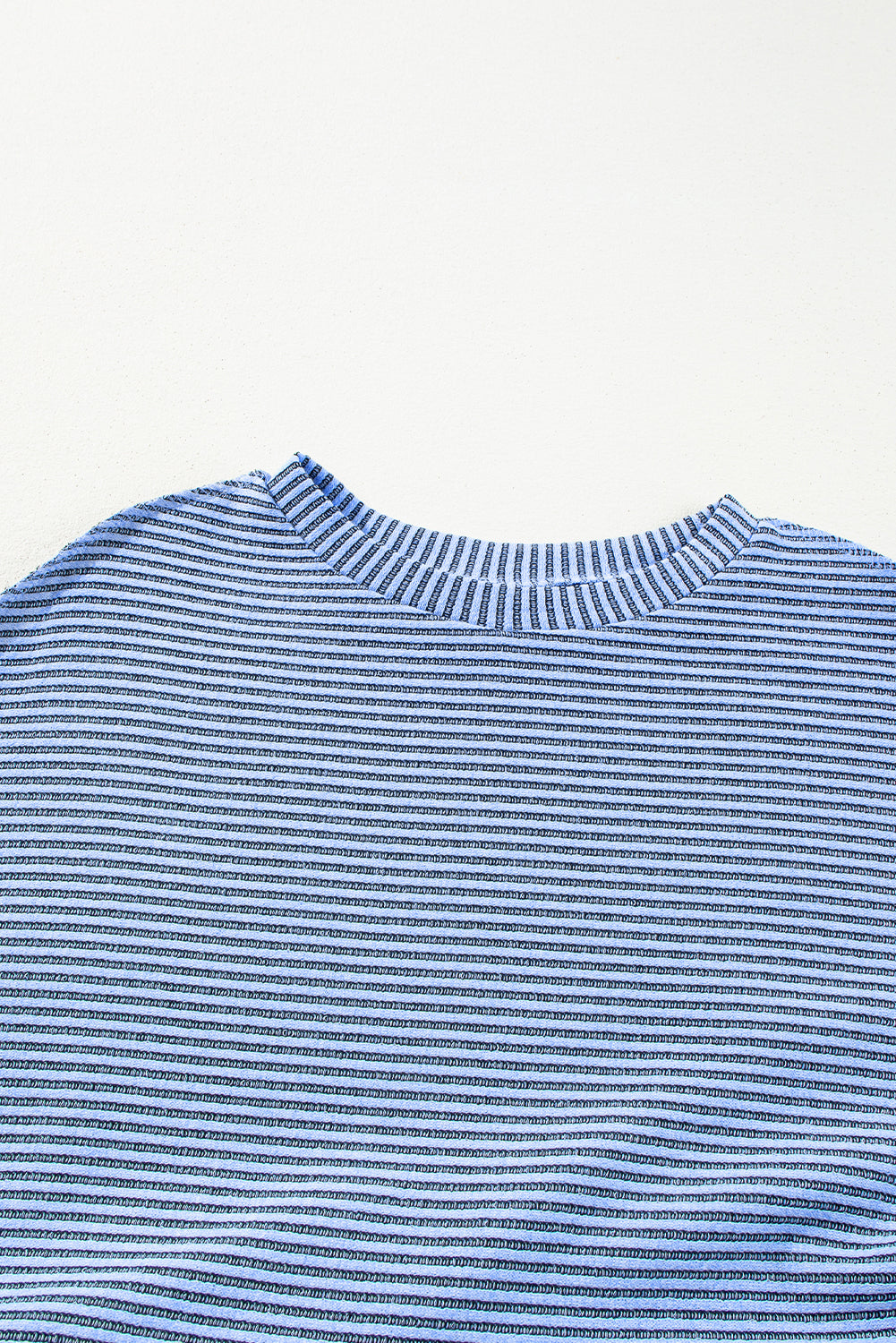 Sky Blue Stripe Patchwork Pleated High Waist Loose Mini Dress